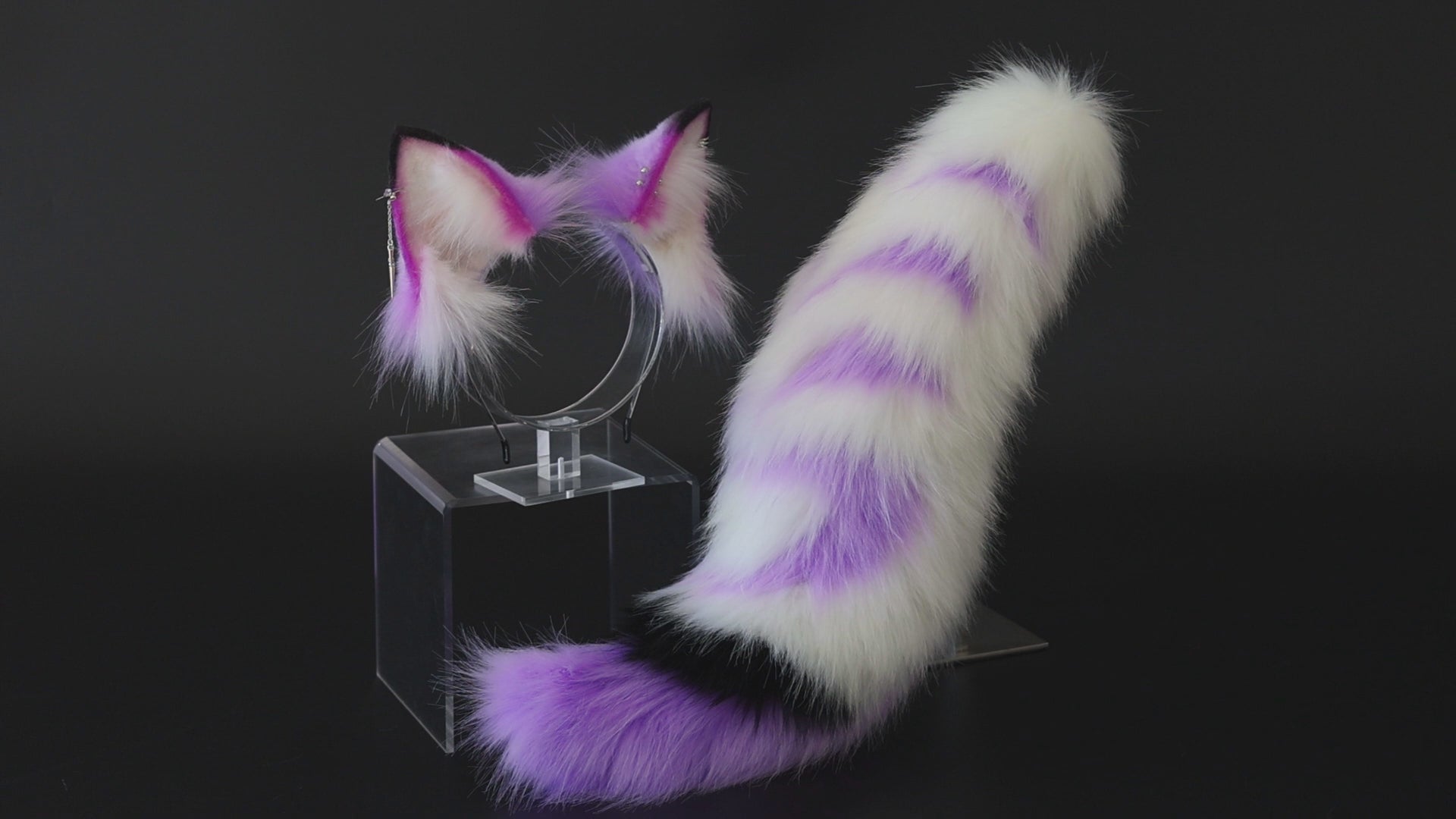 Stitching faux fur purple white fox ear and tail butt plug curved wolf tail and ear cat tail and ear kitten ears and tail set anime cosplay role playStitching faux fur purple white fox ear and tail butt plug curved wolf tail and ear cat tail and ear kitten ears and tail set anime cosplay role play
