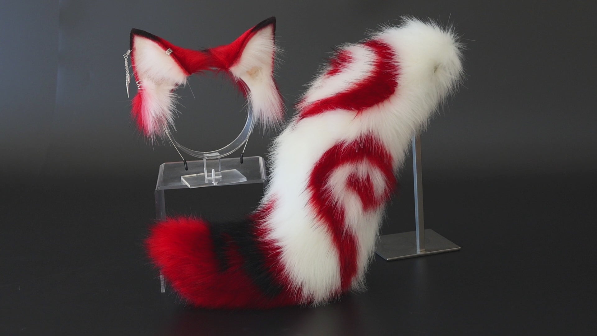 Stitching faux fur red white fox ears and tail curved wolf tail and ears cat tail and ears kitten ears and tail butt plug set anime cosplay role playStitching faux fur red white fox ears and tail curved wolf tail and ears cat tail and ears kitten ears and tail butt plug set anime cosplay role play