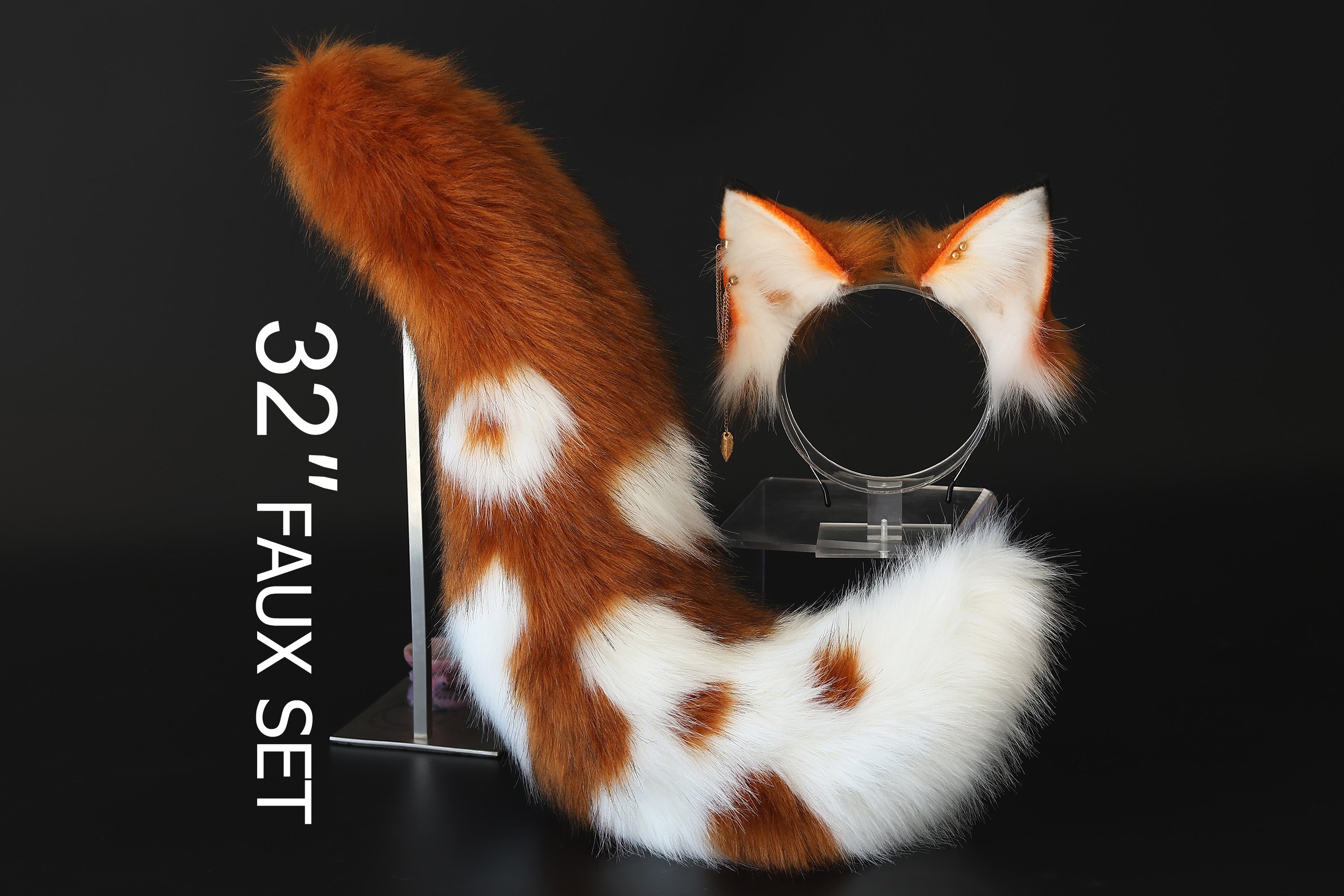 Faux fur fox ear and tail curved wolf tail and ear cat tail and ear kitten ear and tail set anime cosplay role play ear and tail petplay ear