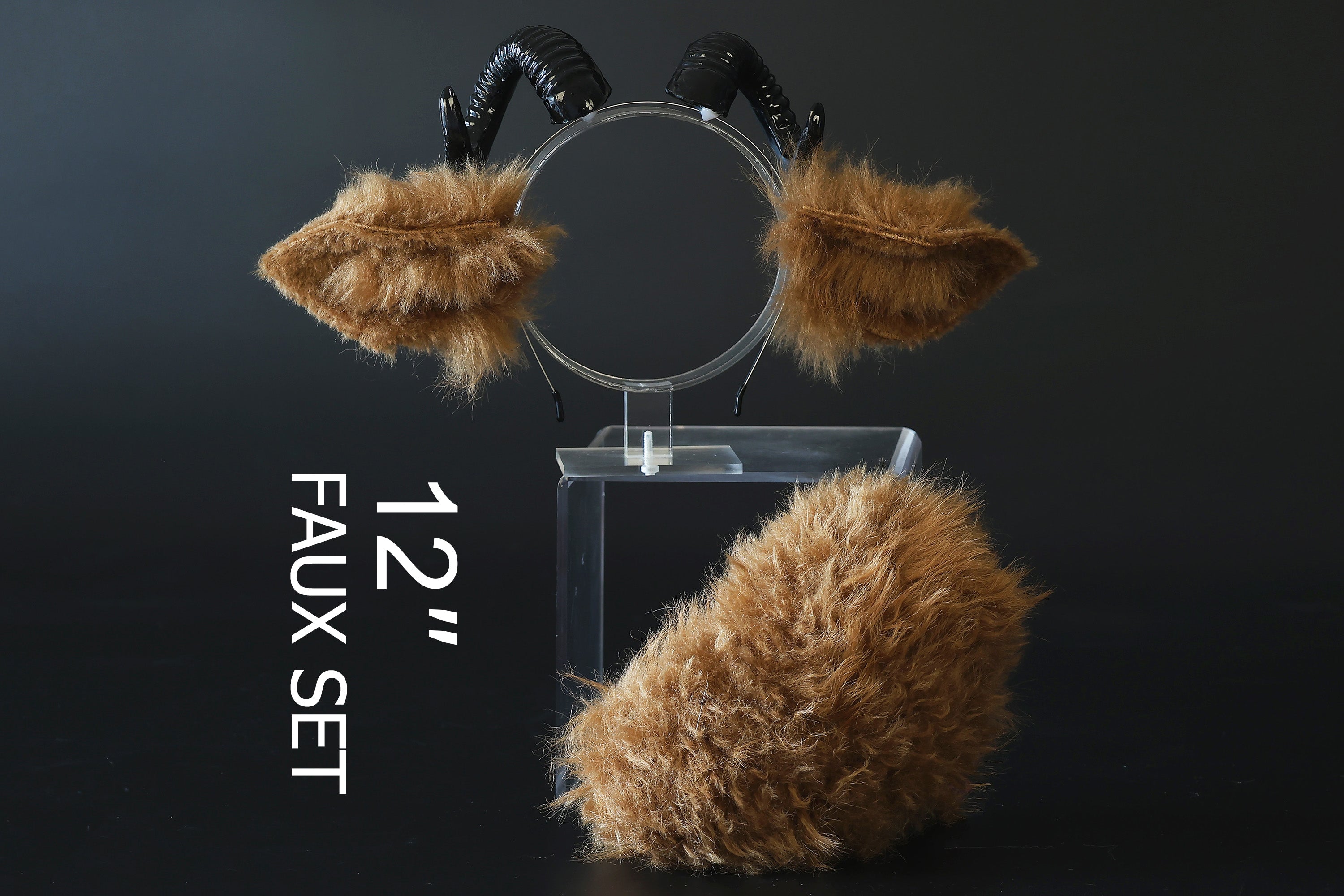 Faux fur sheep costume ears and tail butt plug goat kemonomimi sheep cosplay brown sheep ears with horns therian anime cosplay christmas gift birthday