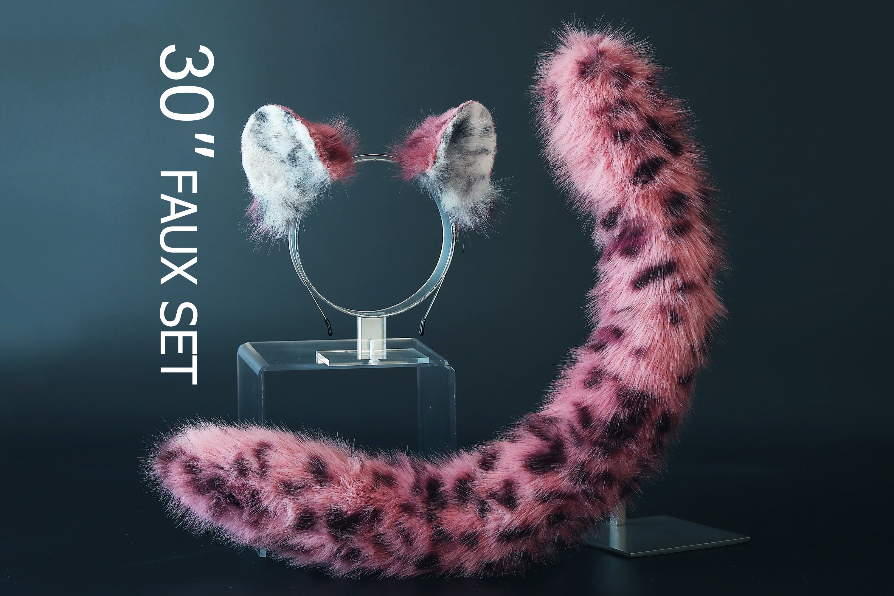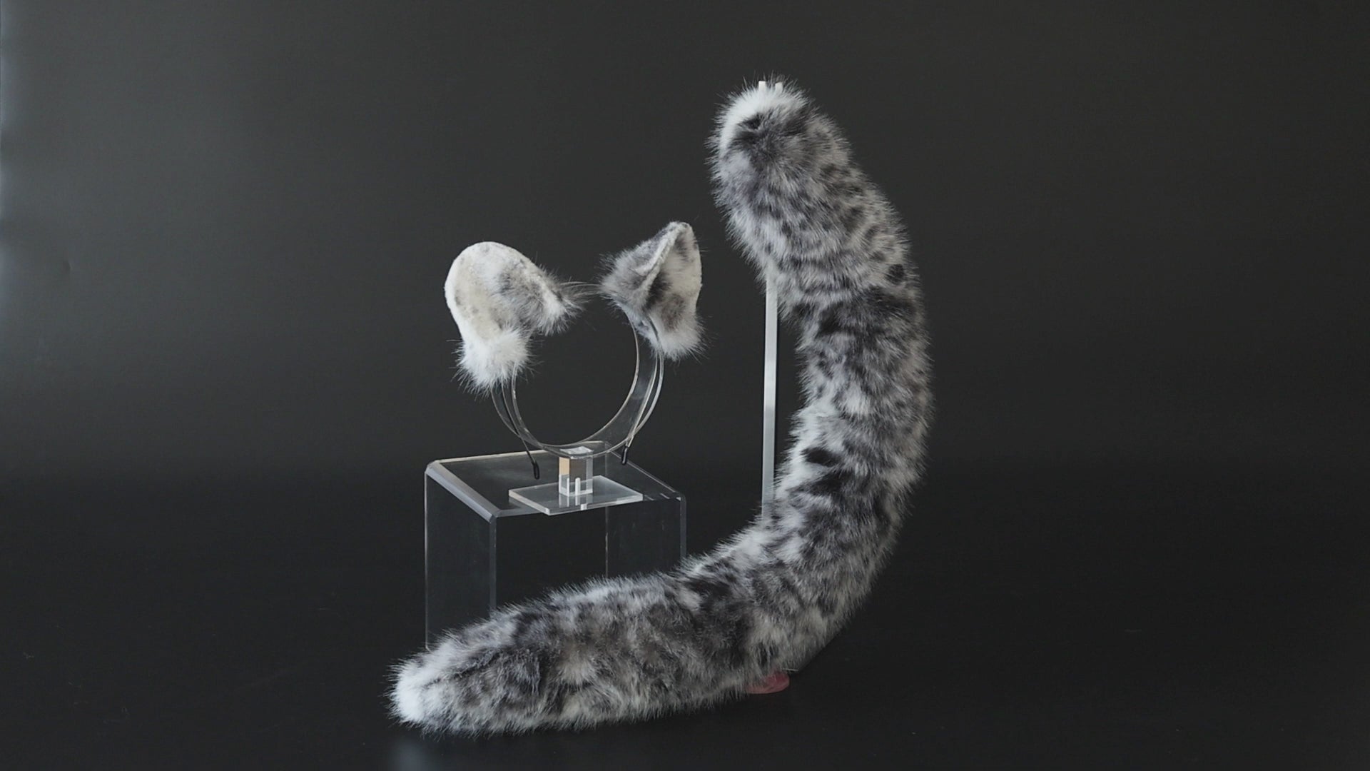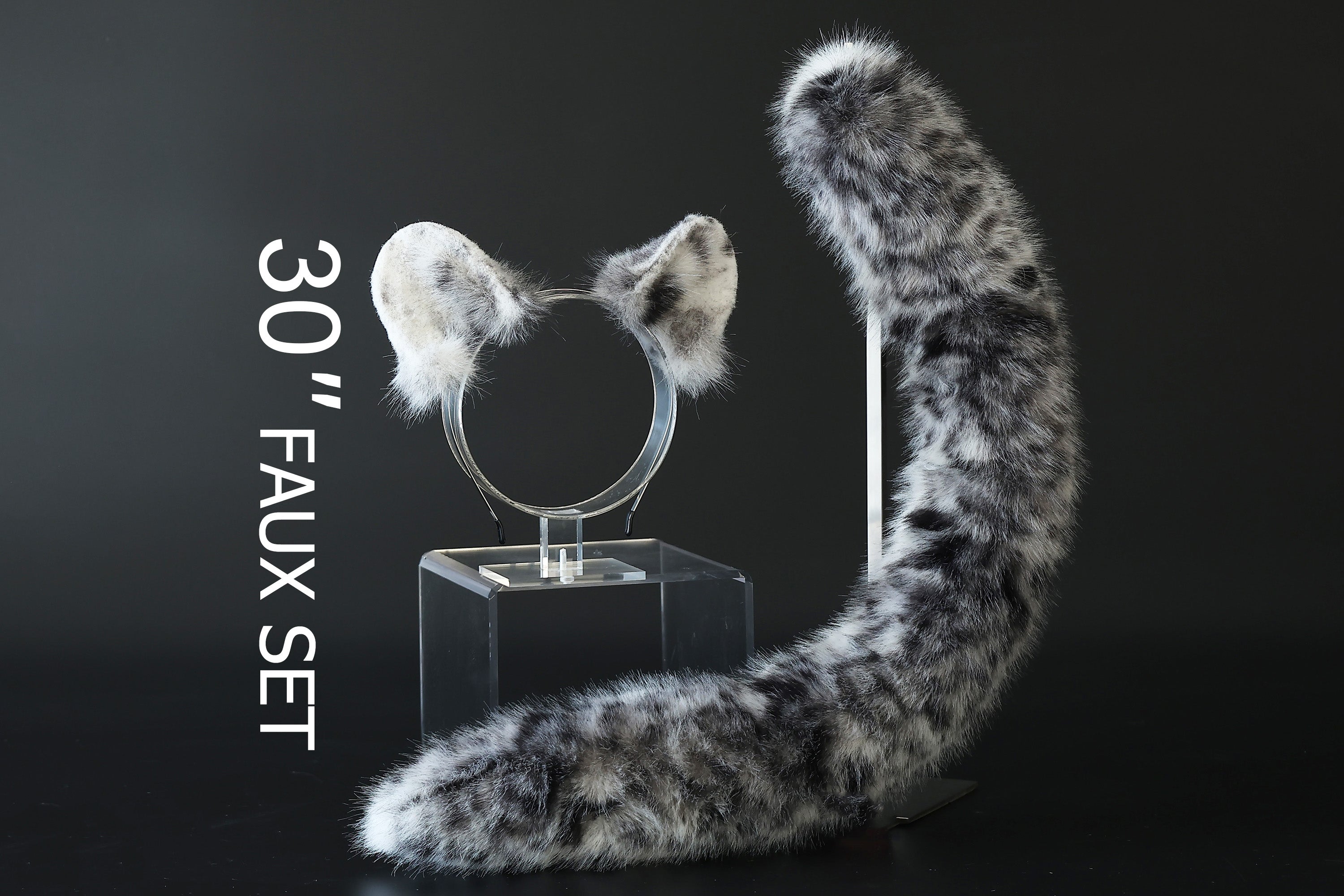 Faux fur snow leopard ear and tail butt plug set role play snow leopard cosplay ear and tail therian spotted leopard kemonomimi christmas gift furry
