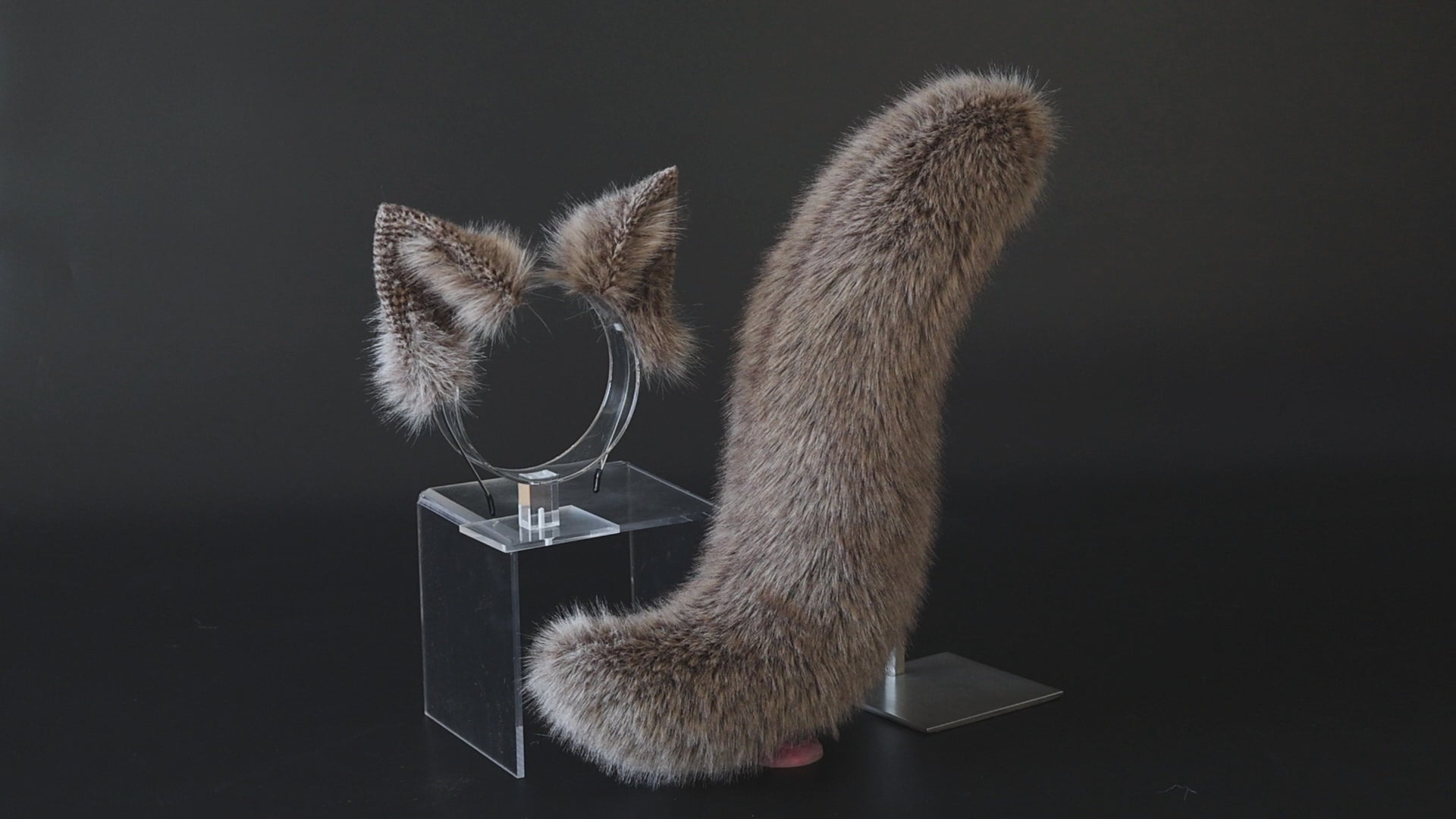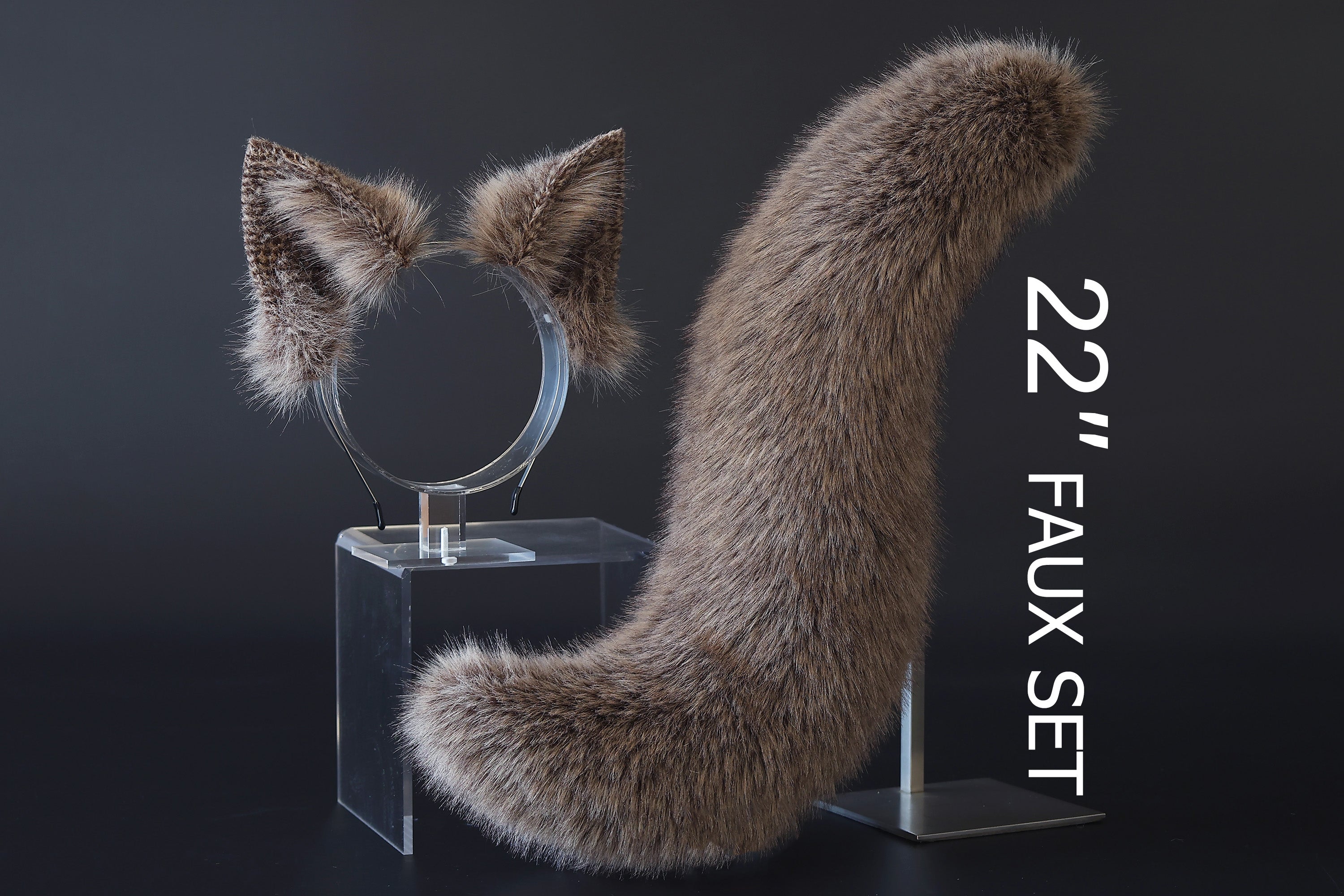 Brown faux fur fox tail plug and ear set splicing wolf ear and tail anime cosplay therian cat ear and tail kemonomimi girl fox boy furry