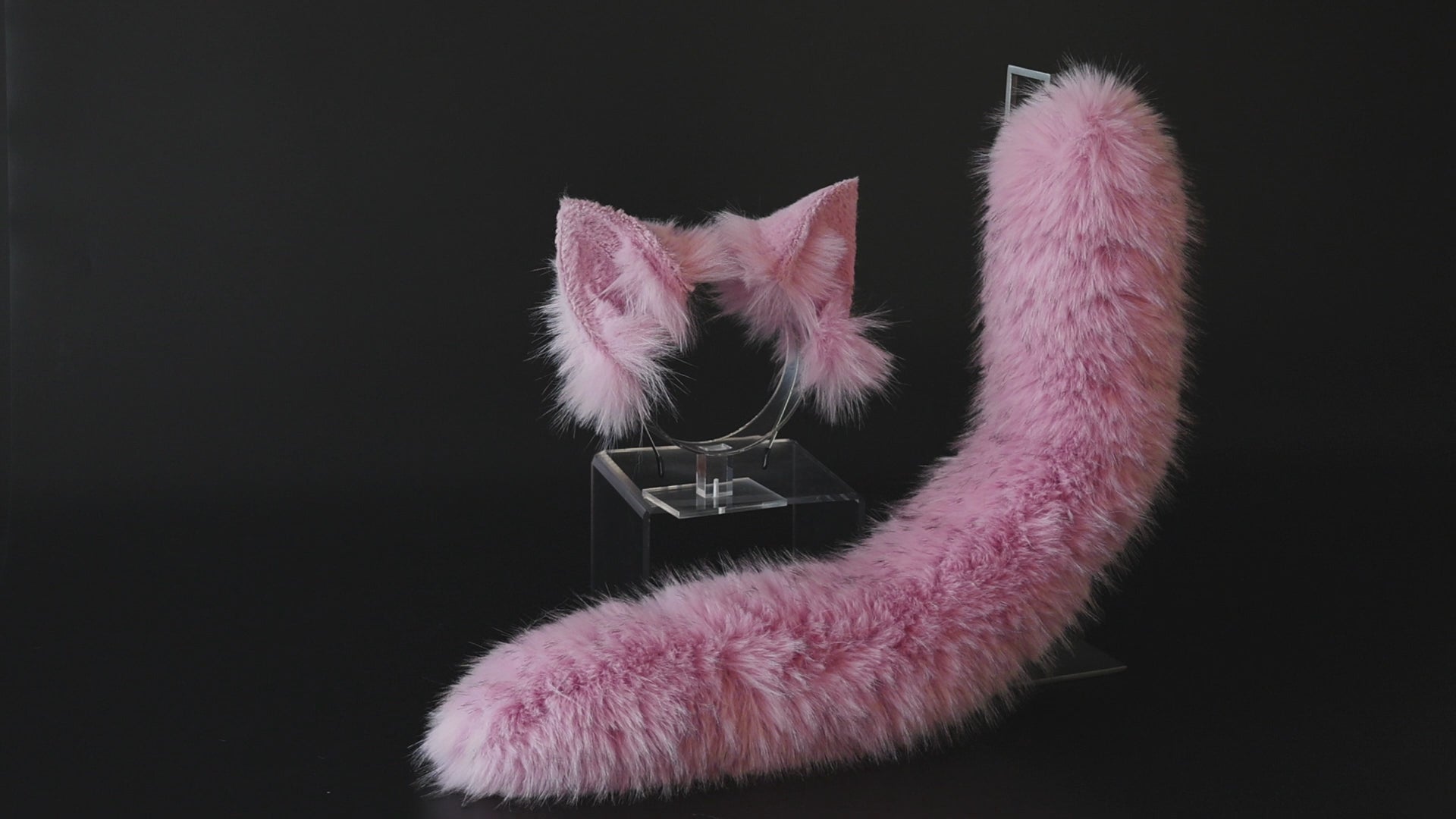 Pink fox tail butt plug and ear set realistic faux fur wolf ear and tail anime cosplay therian cat ear and tail kitten ears and tail kemonomimi furry
