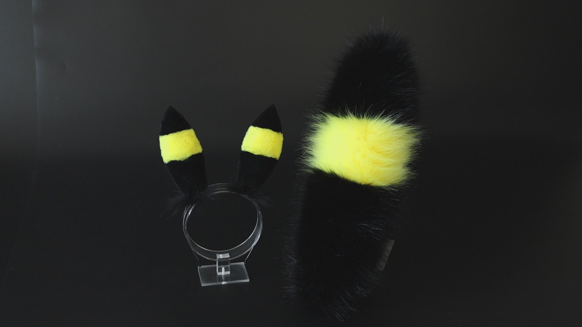 MTO Shiny Umbreon Ears and Tail Butt Plug Faux Fur Yellow Black Pokemon Umbreon Costume Ear And Tail Birthday Halloween gifts Christmas Anime Cosplay