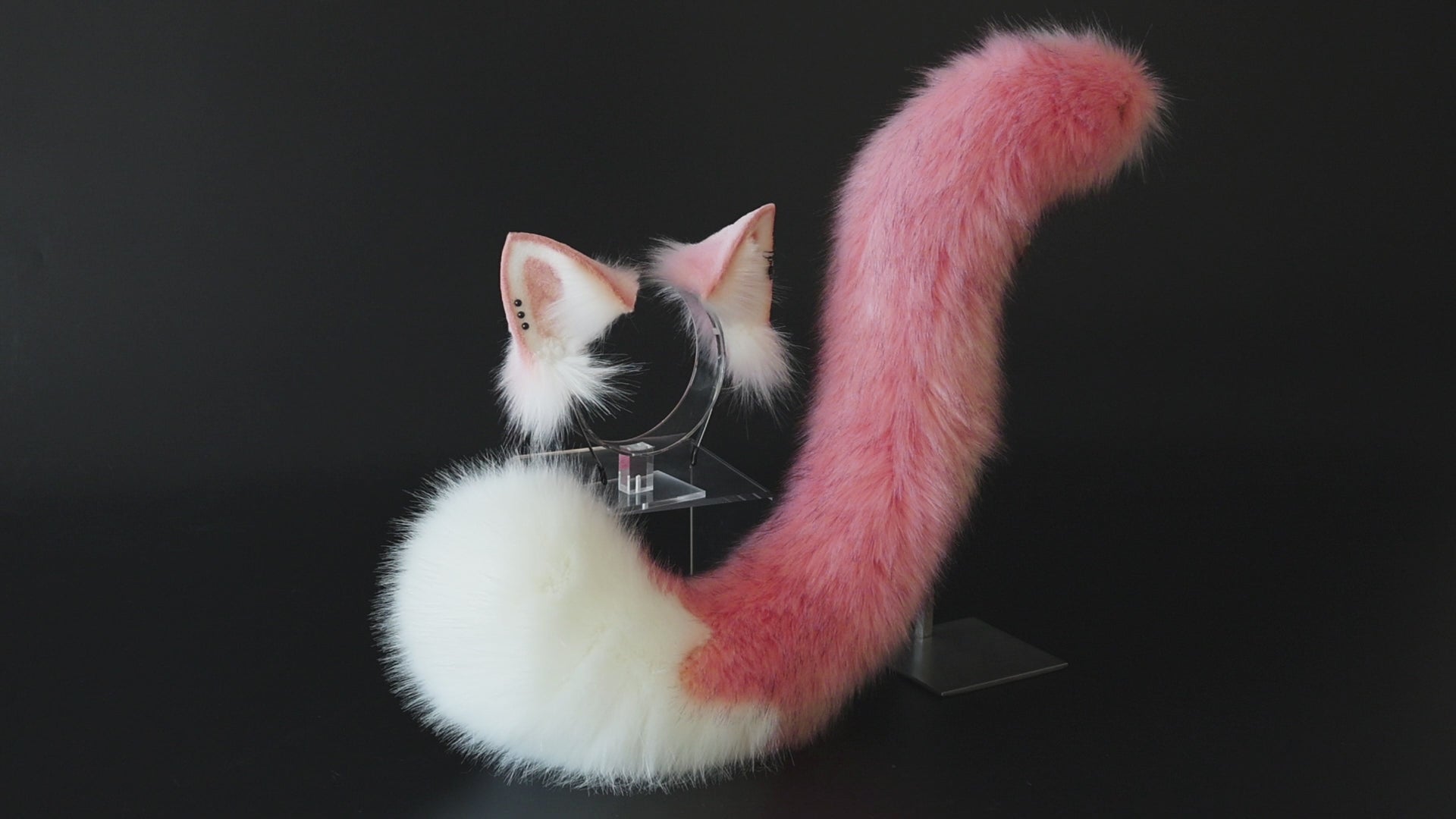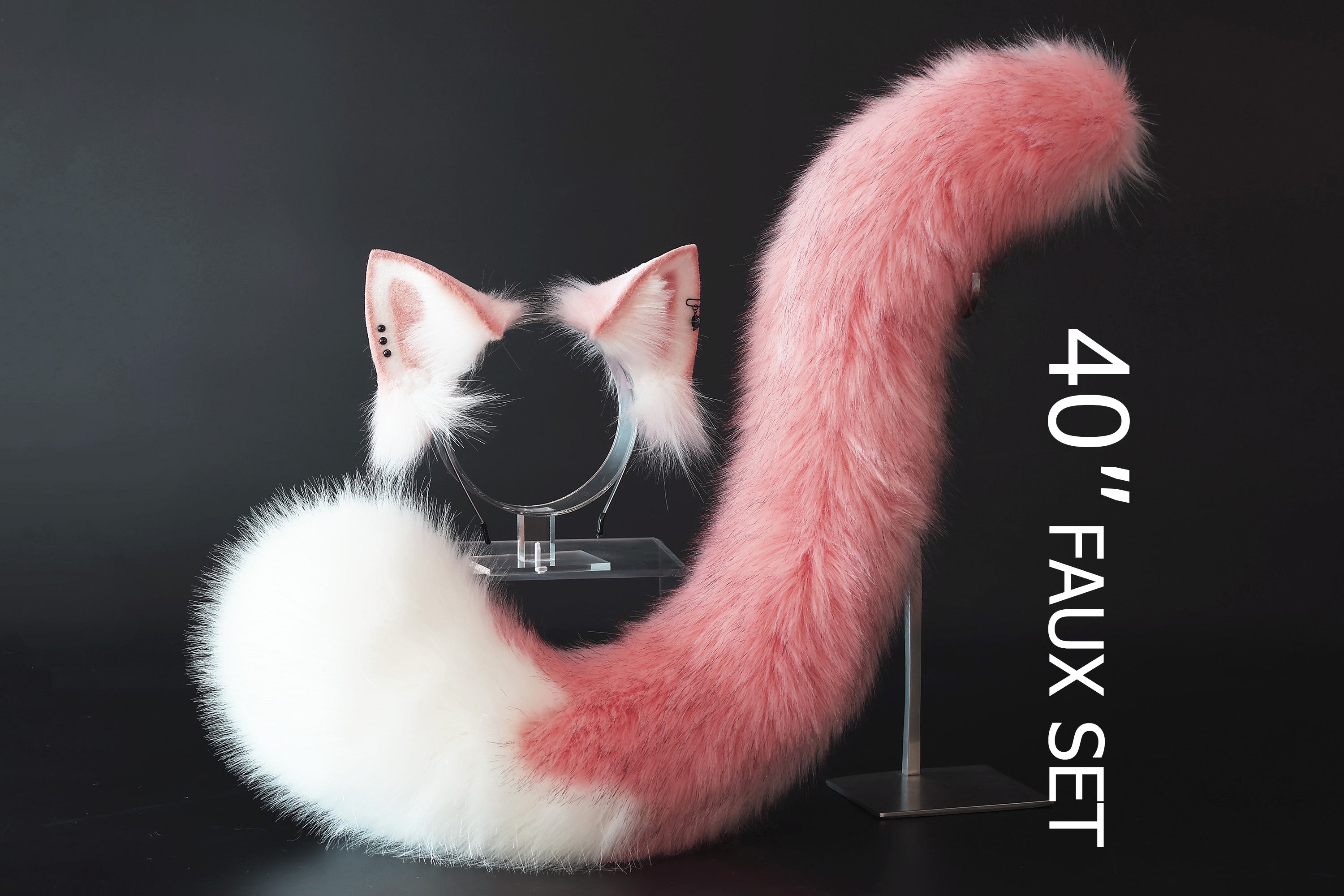 Pink and white stitching cat tail and ears kitten ears and tail set fox ears and tail curved wolf tail and ears anime cosplay role play