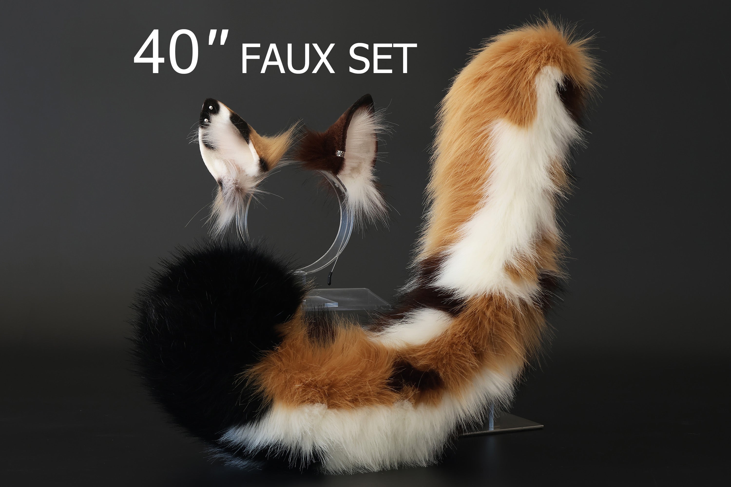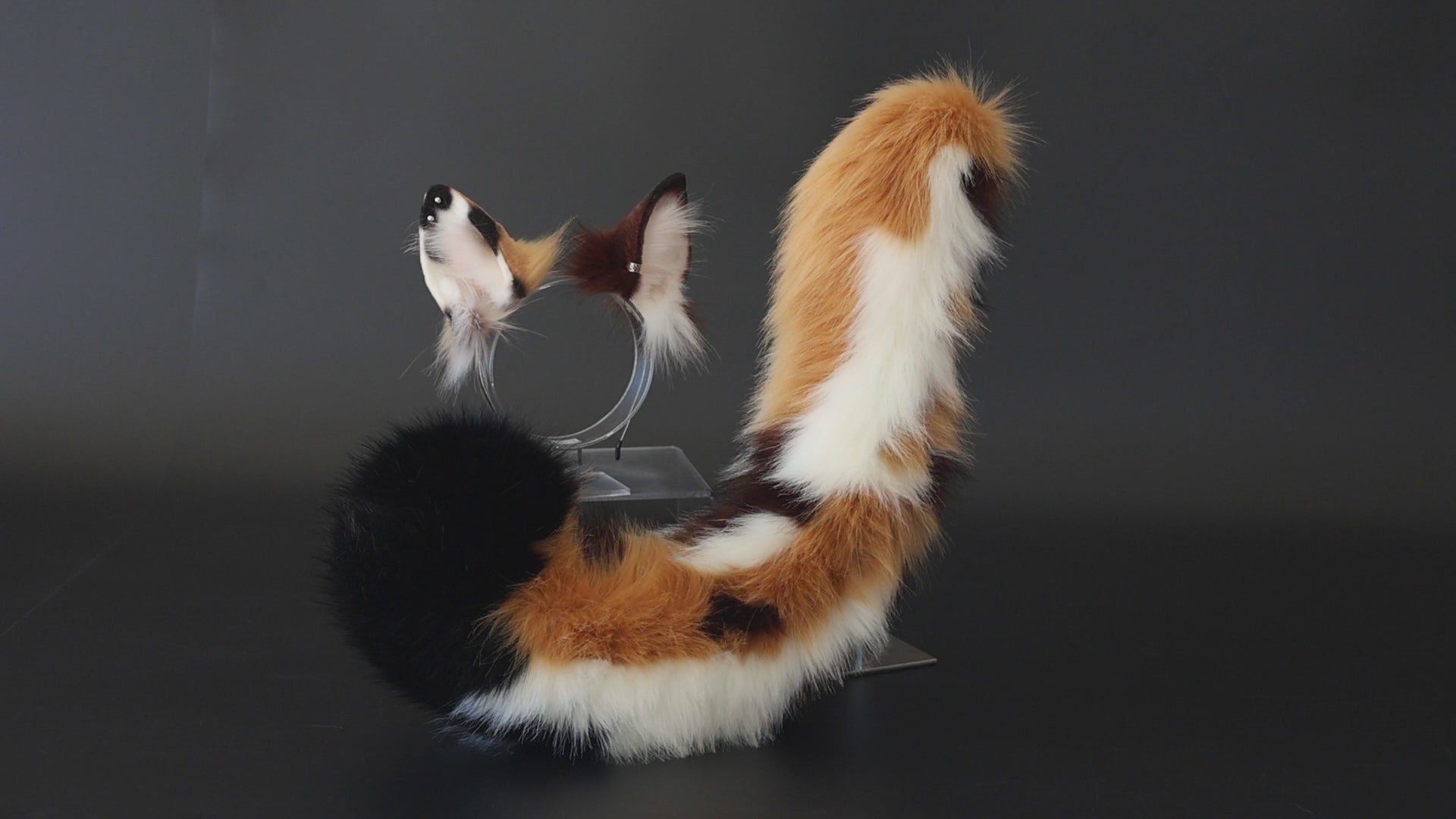 Calico faux fur cat ears and tail curved puppy tail and ears wolf tail and ears fox ears and tail butt plug set anime cosplay role play halloween Gift