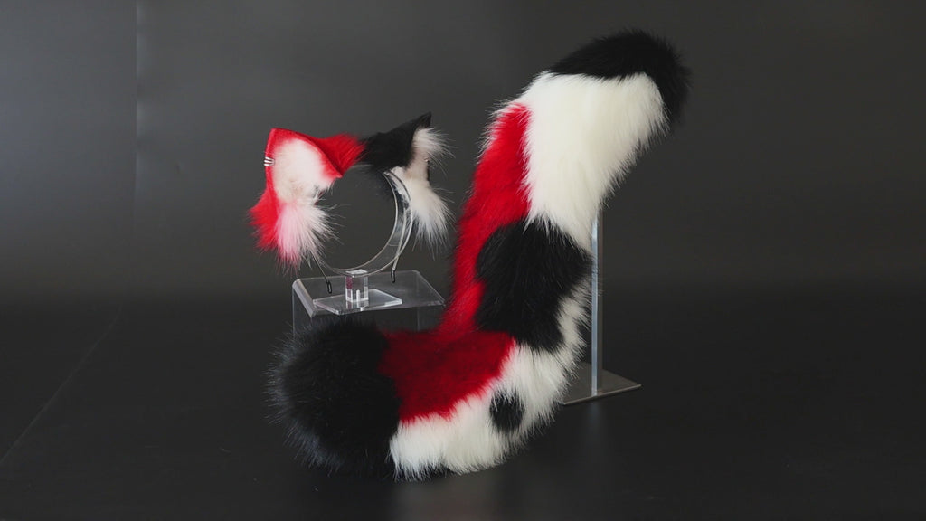 Materials: faux fur, fake fur, metal plug, silicone plug, detach butt plug, headband, ribbon, belt.