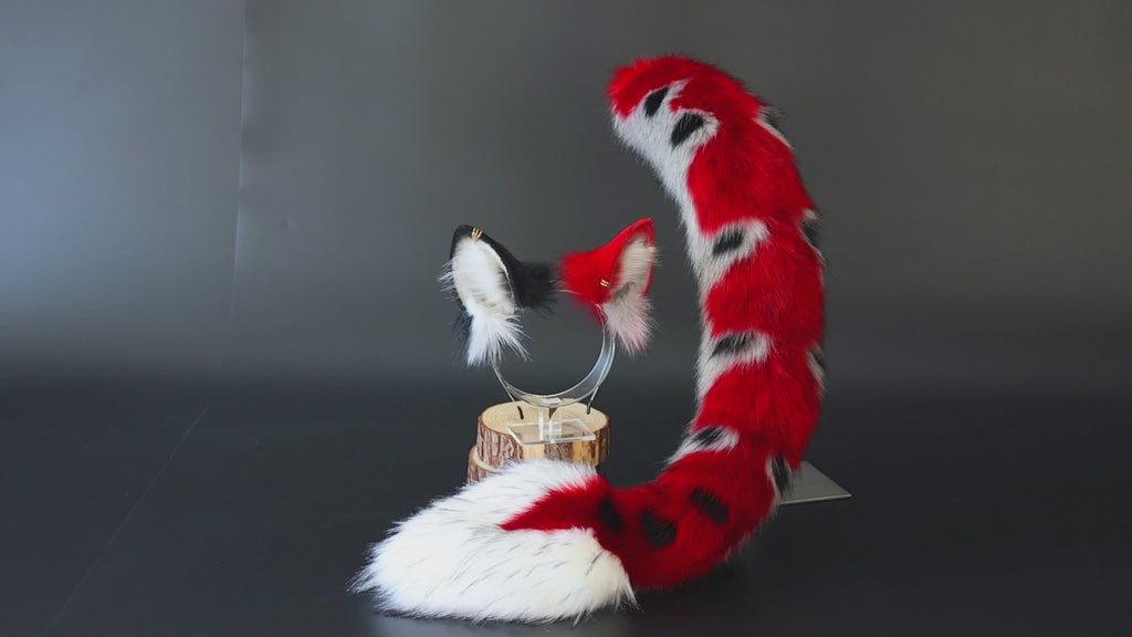 Faux fur dragon tail plug and ear anime cosplay fluffy tipped dragon wirin wickerbeast fursuit tail furry tail and ear lolita kemonomimi therian