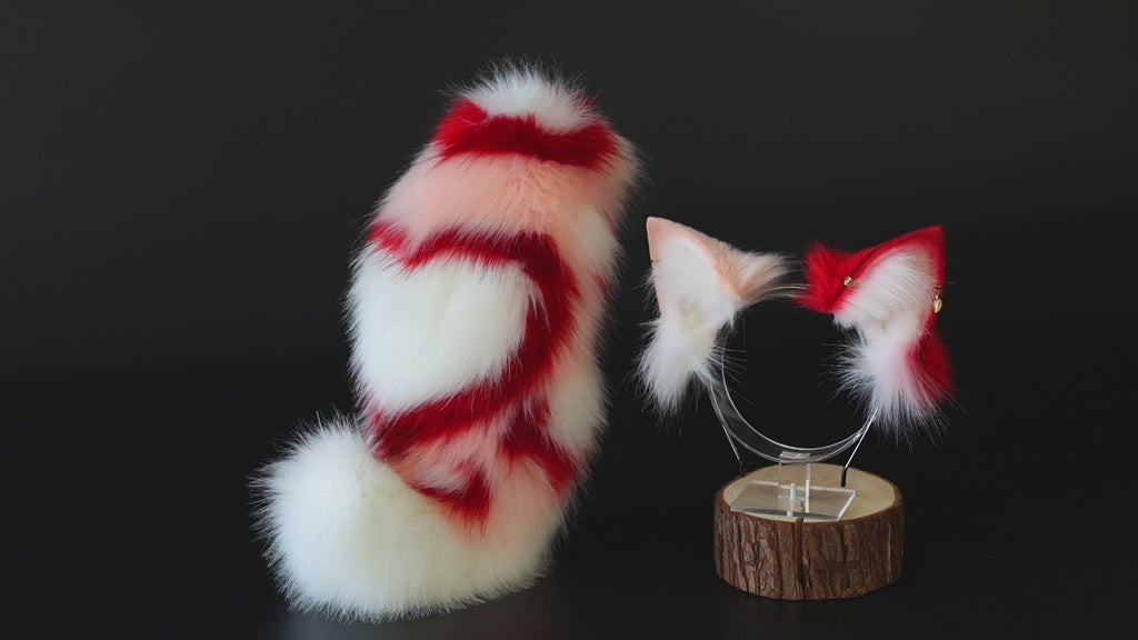 Materials: faux fur, fake fur, metal plug, silicone plug, detach butt plug, screw detachable plug, headband, ribbon, belt.