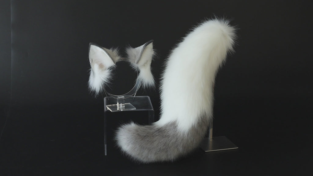 White gray realistic faux fur fox tail and ear set splicing wolf ear and tail butt plug anime cosplay therian cat ear and tail kitten tail and ears kemonomimiWhite gray realistic faux fur fox tail and ear set splicing wolf ear and tail butt plug anime cosplay therian cat ear and tail kitten tail and ears kemonomimi
